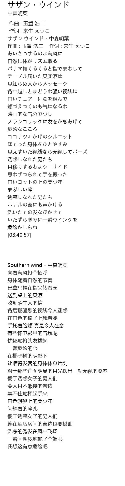| [00:00.02] | サザン·ウインド - 中森明菜 |