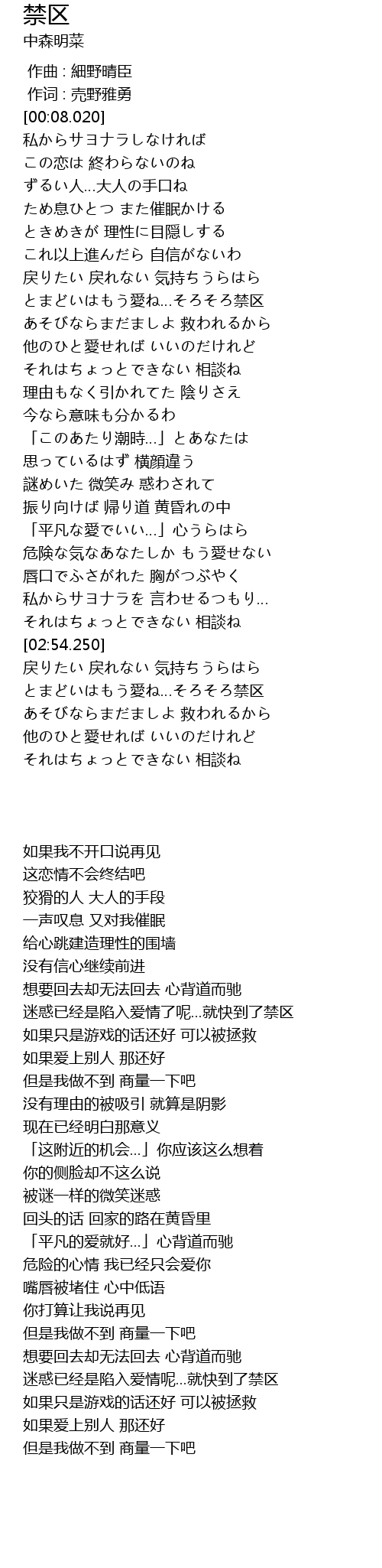 | [03:10.640] | とまどいはもう愛ね…そろそろ禁区 |