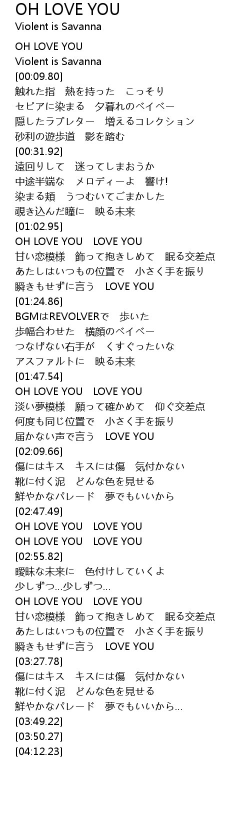 | [03:07.20] | OH LOVE YOU LOVE YOU |