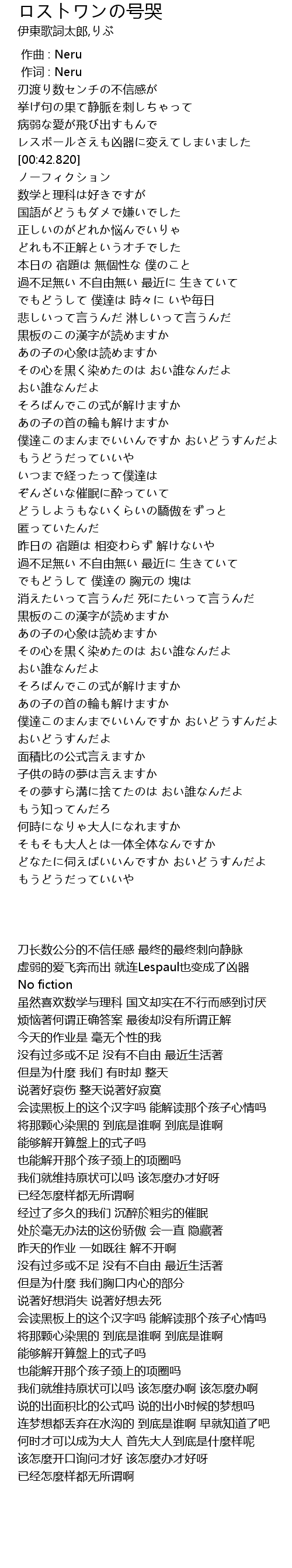 | [00:01.00] | 作词 : Neru |