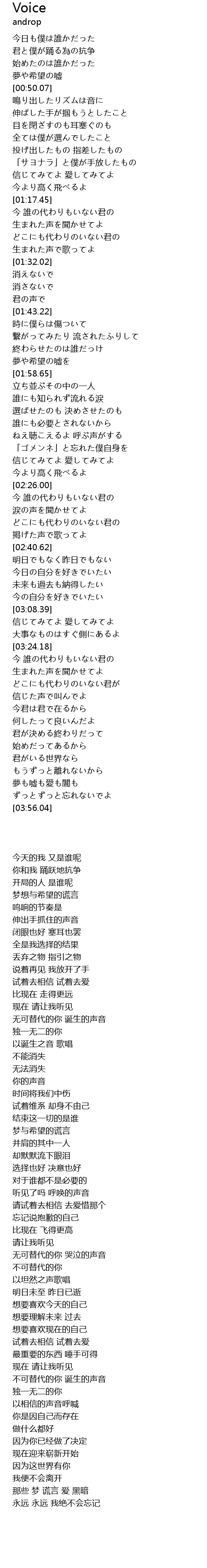 | [01:21.80] | 生まれた声を聞かせてよ |