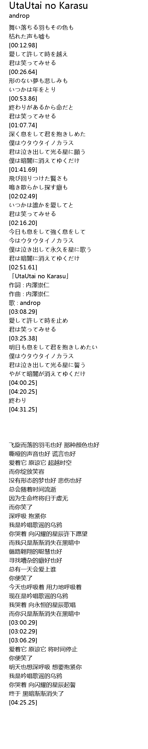 | [03:00.29] | 「UtaUtai no Karasu」 |
