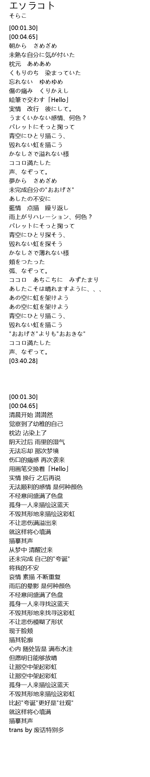 | [00:47.45] | 絵筆で交わす「Hello」 |