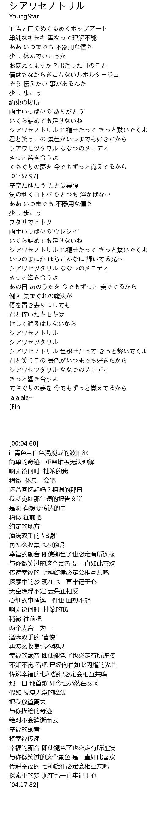 | [03:19.44] | シアワセノトリル |