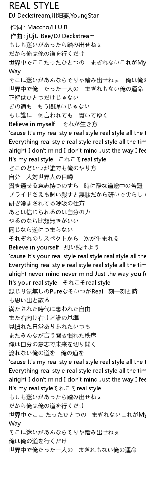 | [02:47.955] | 'cause It's my real style real style real style all the time |