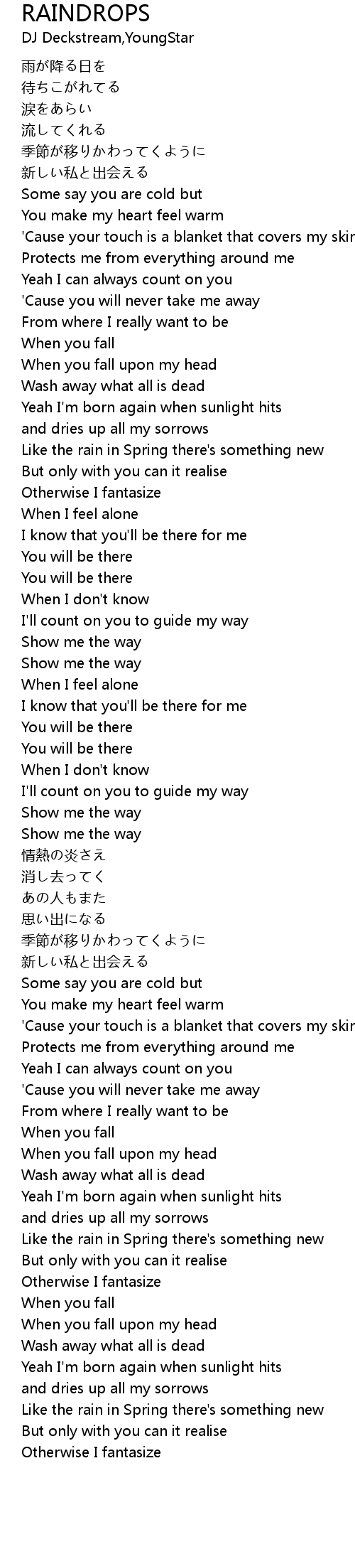 | Song | RAINDROPS |