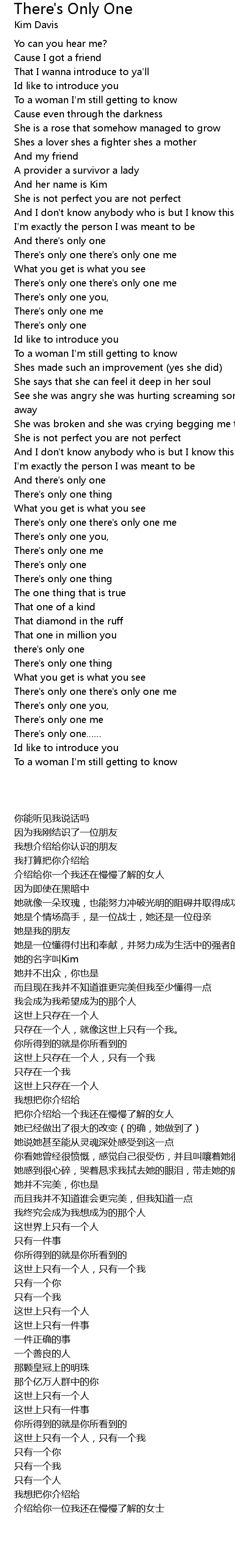 | [01:09.220] | There' s only one there' s only one me |