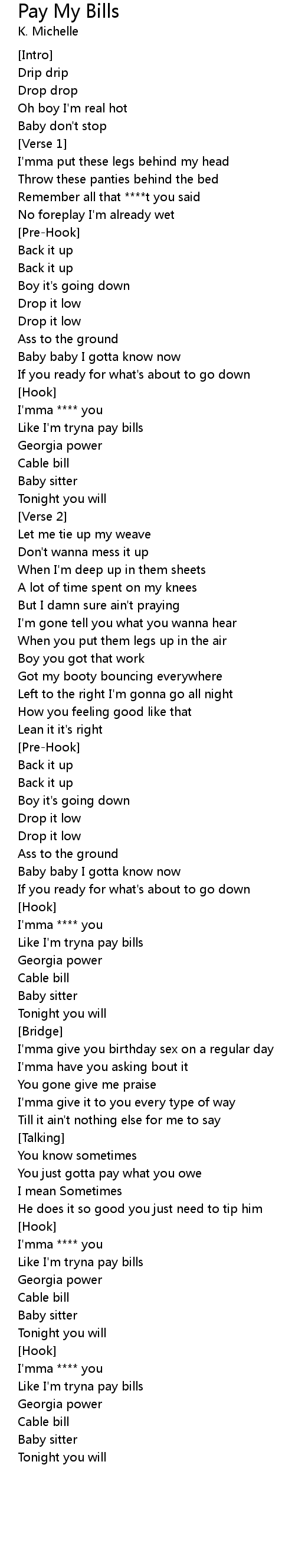Like I'm tryna pay bills |