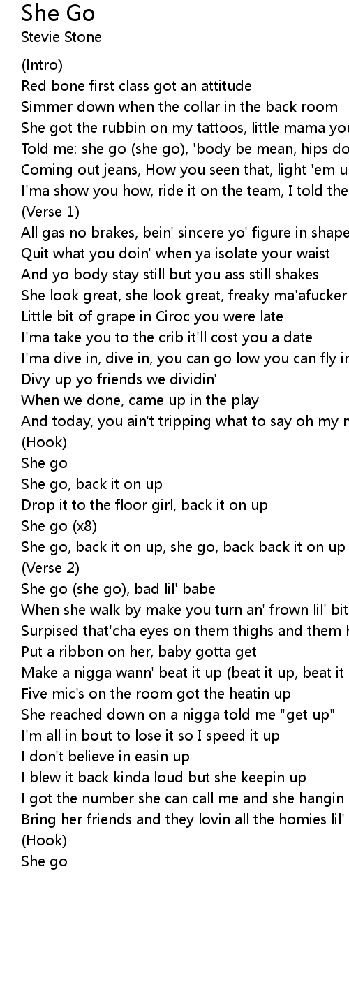Told me: she go (she go), 'body be mean, hips dot' lie