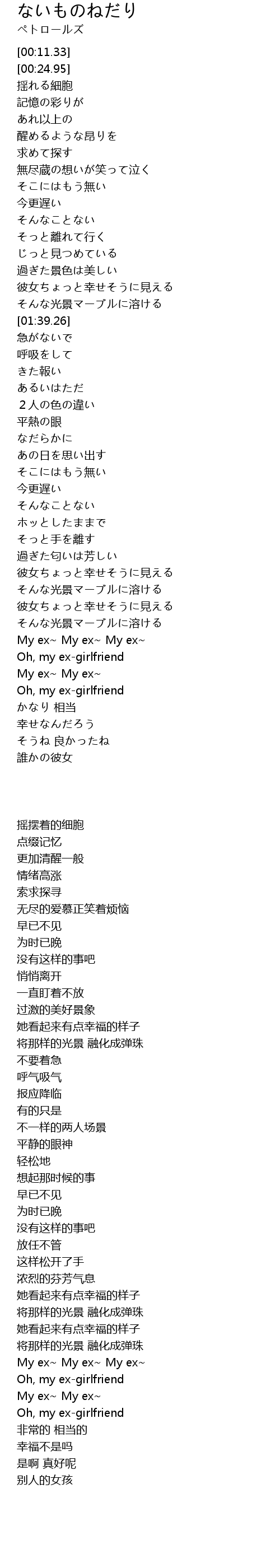 | [03:10.15] | My ex~ My ex~ My ex~ |