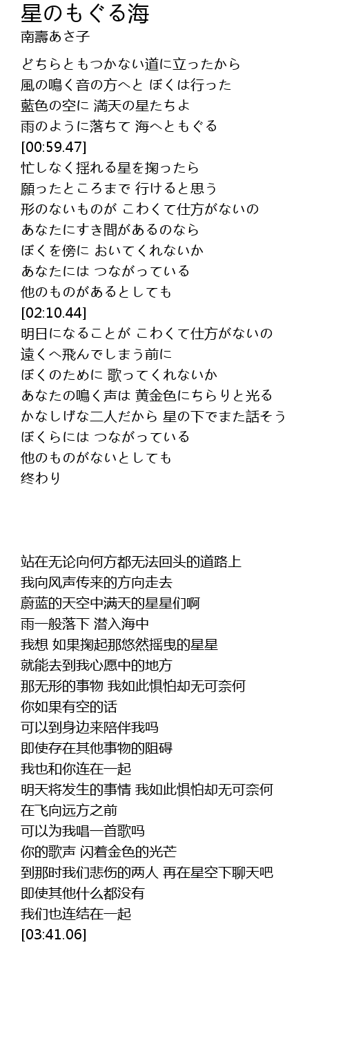 | [00:43.76] | 雨のように落ちて 海へともぐる |