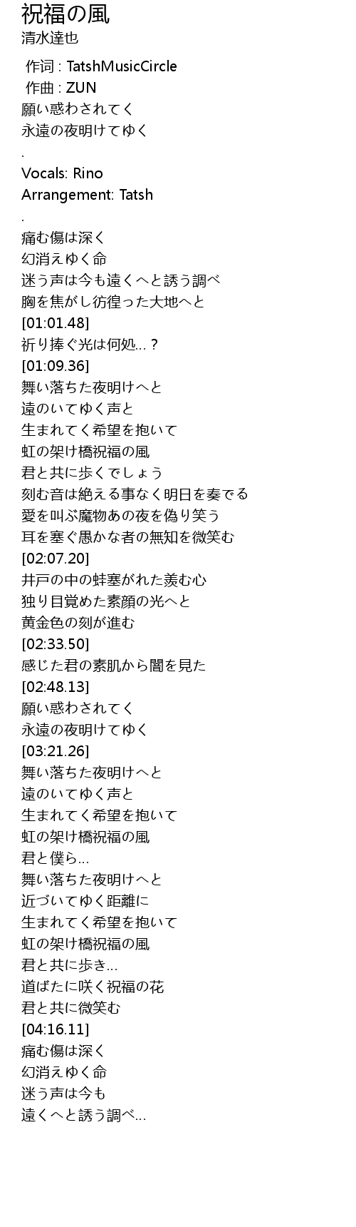 | [03:35.62] | 虹の架け橋祝福の風 |