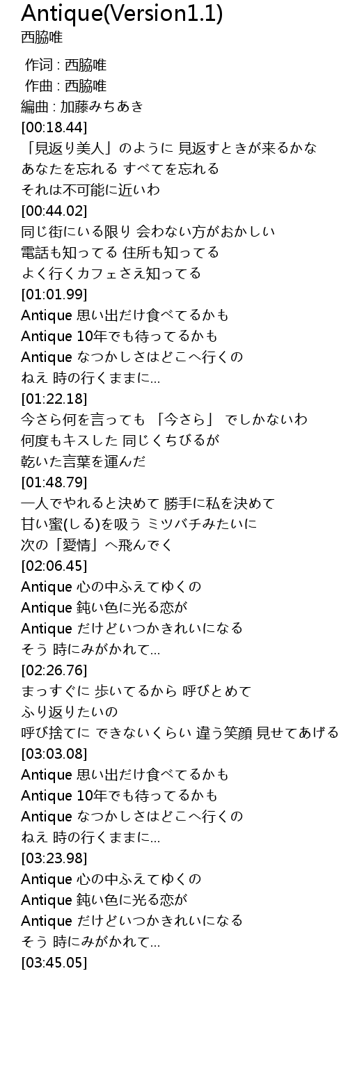 Antique(Version1.1) Lyrics