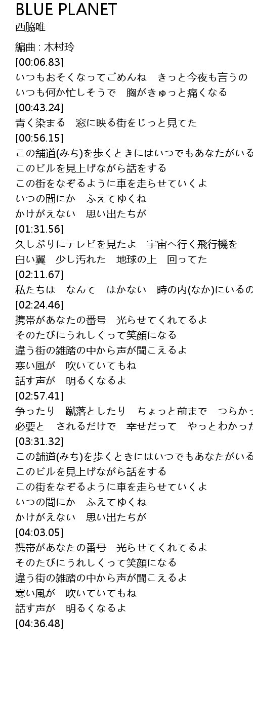 | [04:16.34] | 違う街の雑踏の中から声が聞こえるよ |