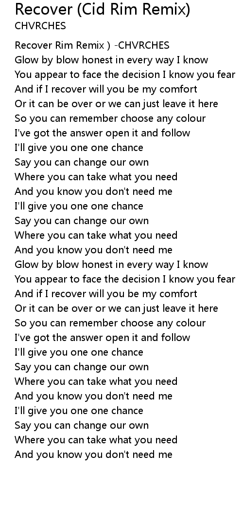 | [00:00.260] | Recover Rim Remix CHVRCHES |