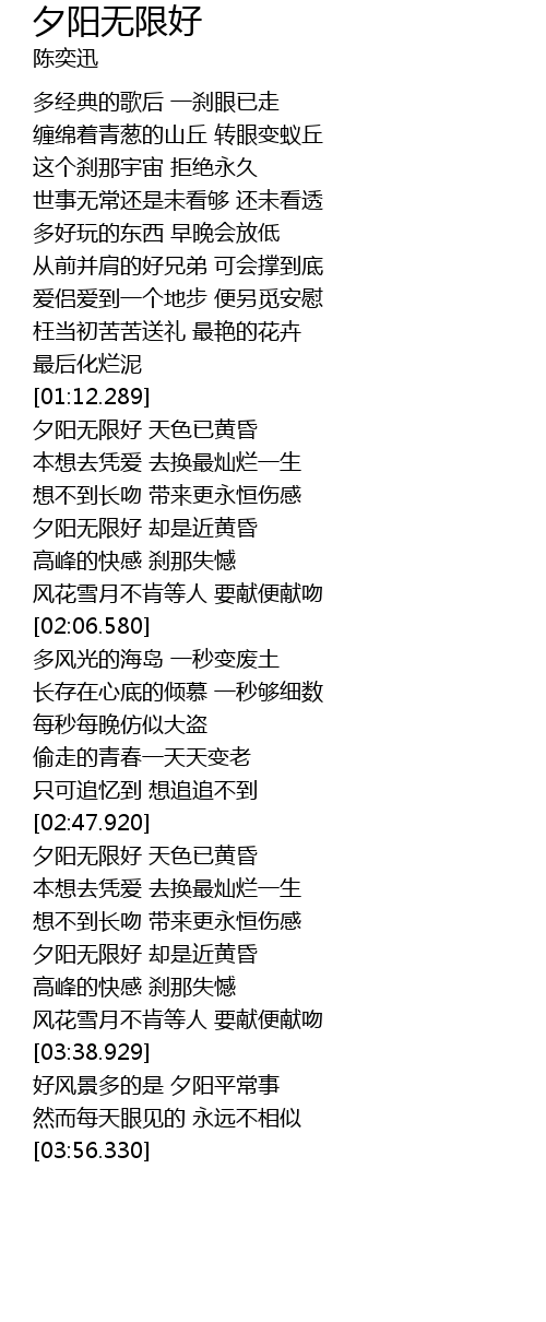 | [01:36.479] | 夕阳无限好 却是近黄昏 |