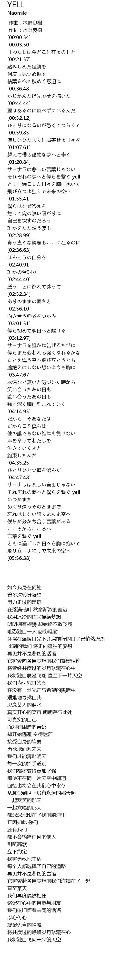 | [04:59.67] | それぞれの夢へと僕らを繋ぐ yell |