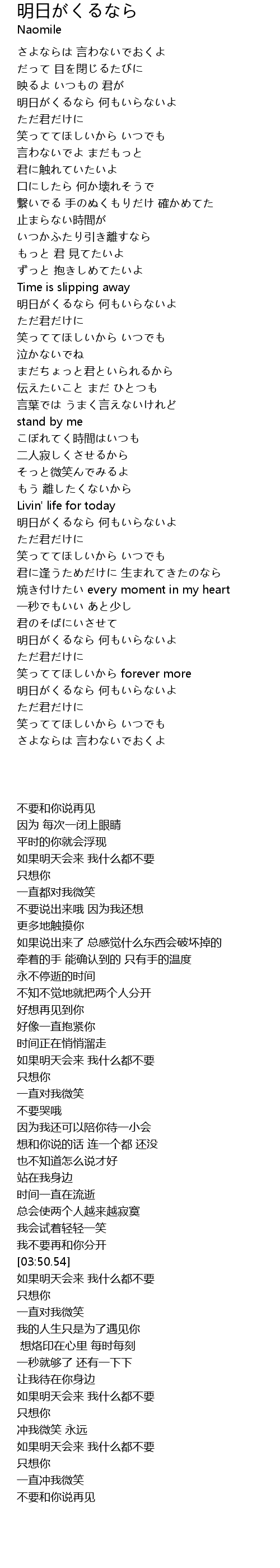 | [03:56.34] | 明日がくるなら 何もいらないよ |