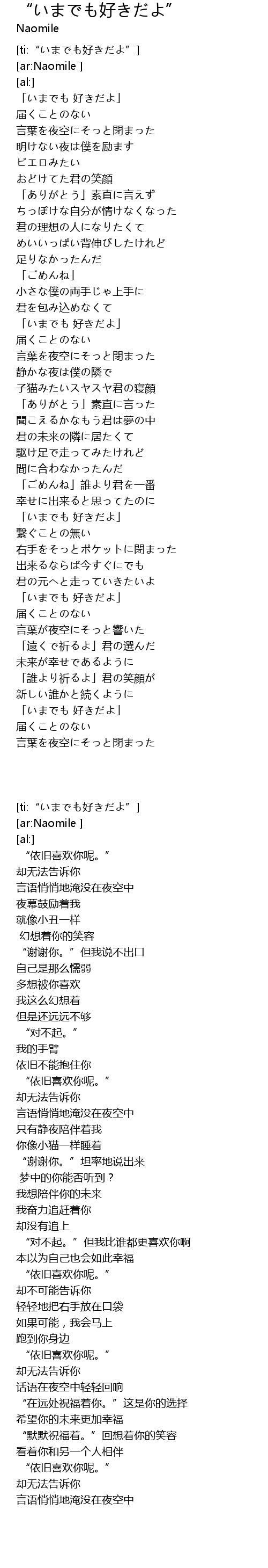 | [ti:“いまでも好きだよ”] | |
