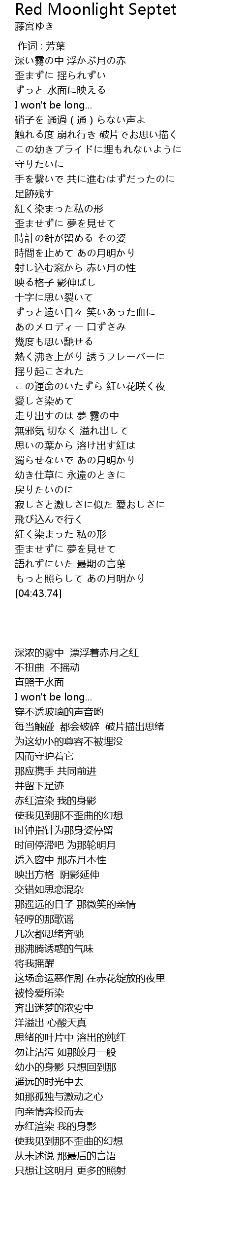 | [00:23.26] | 深い霧の中 浮かぶ月の赤 |
