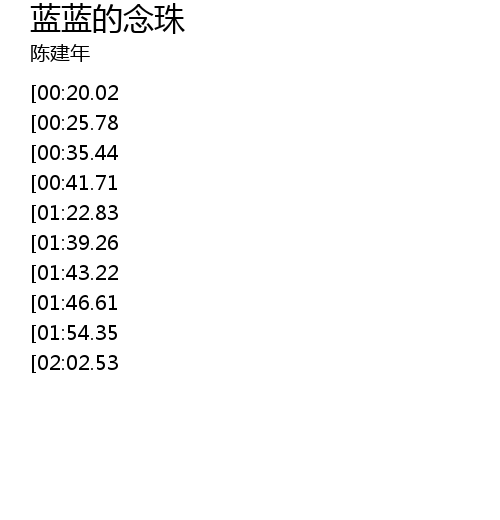 | [02:58.56][01:22.83] | 蓝蓝的念珠 蓝蓝的念珠 |