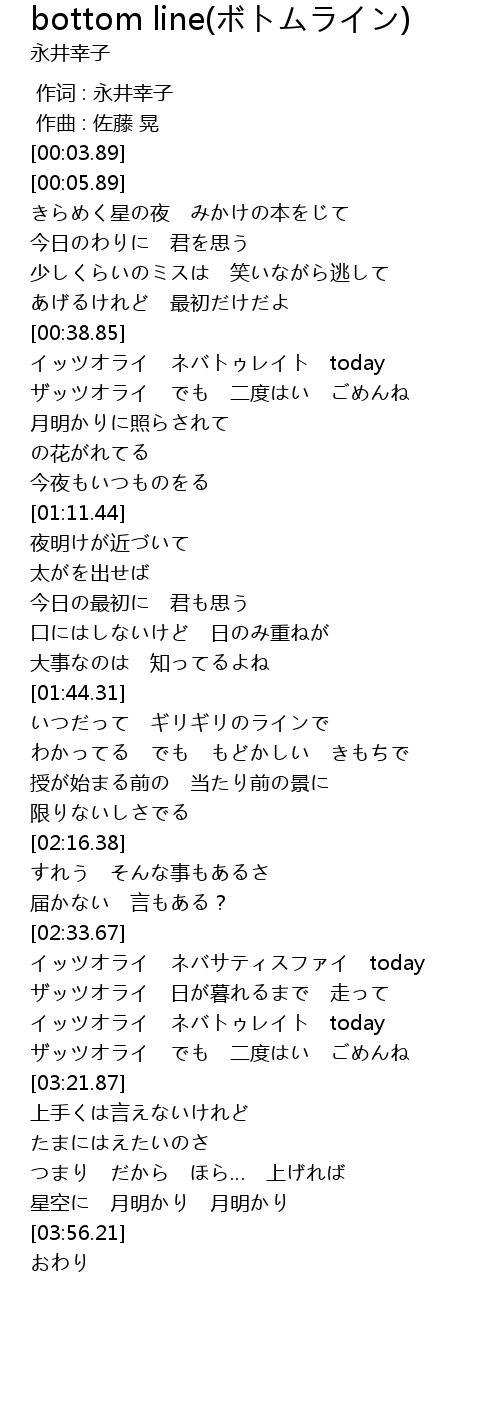 | [03:15.87] | ザッツオライ でも 二度はい ごめんね |