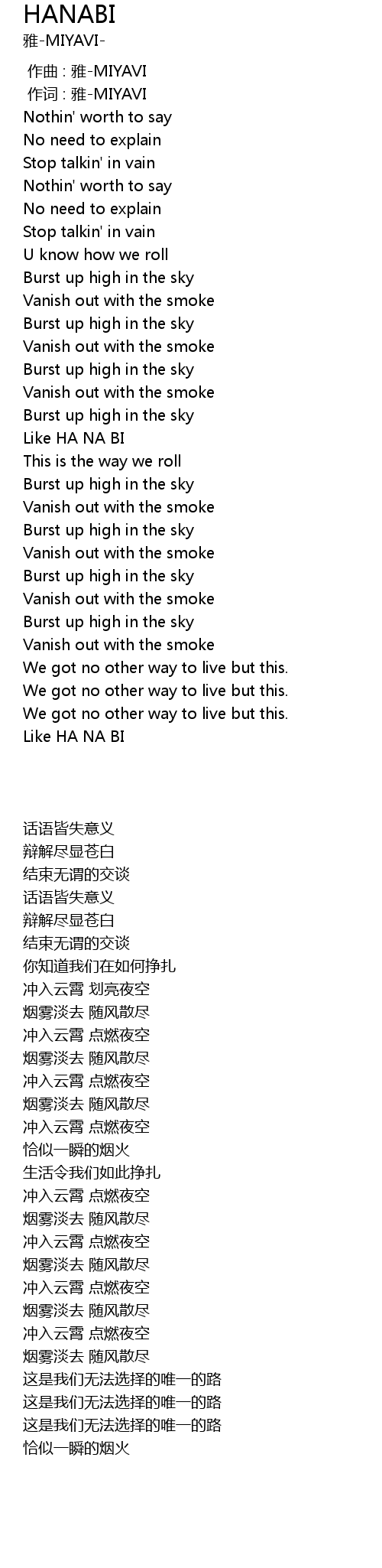 | [00:01.00] | 作词 : 雅-MIYAVI |