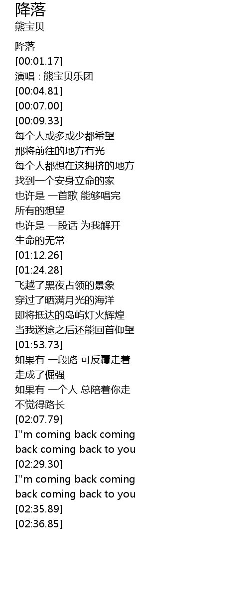 | [02:29.61] | I'' m coming back coming |