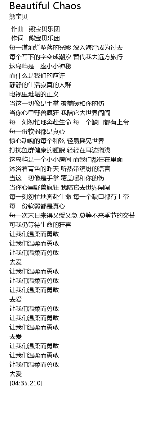 | [00:00.00] | 作曲 : 熊宝贝乐团 |