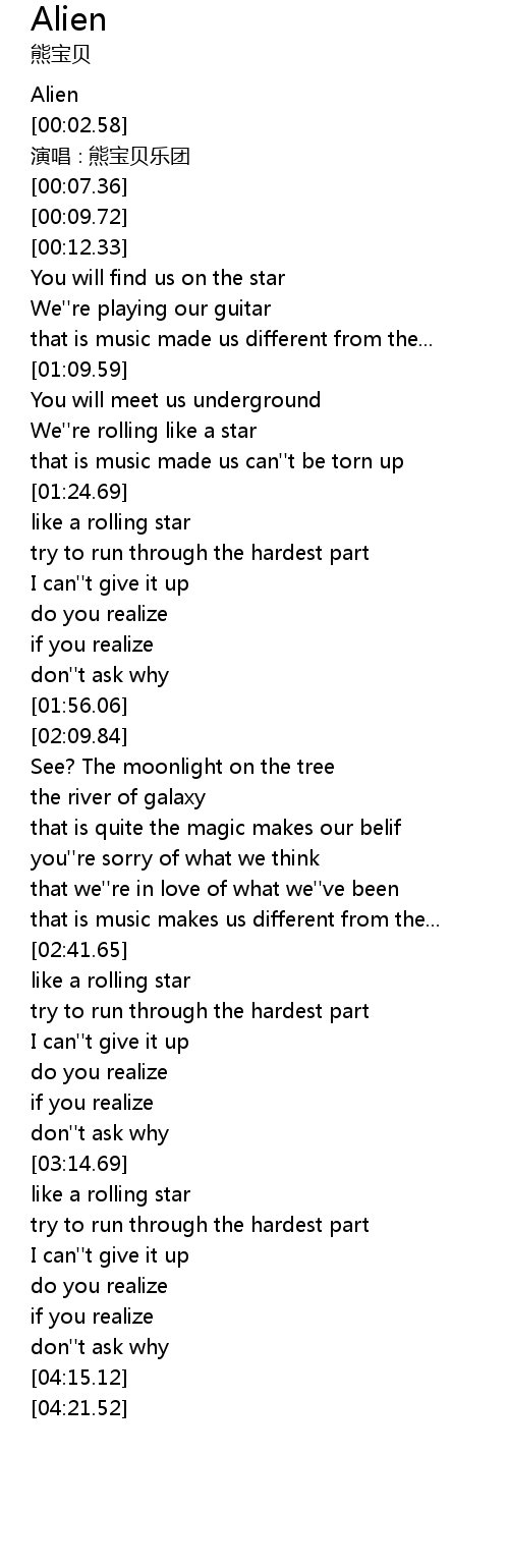 | [00:05.40] | 演唱∶熊宝贝乐团 |