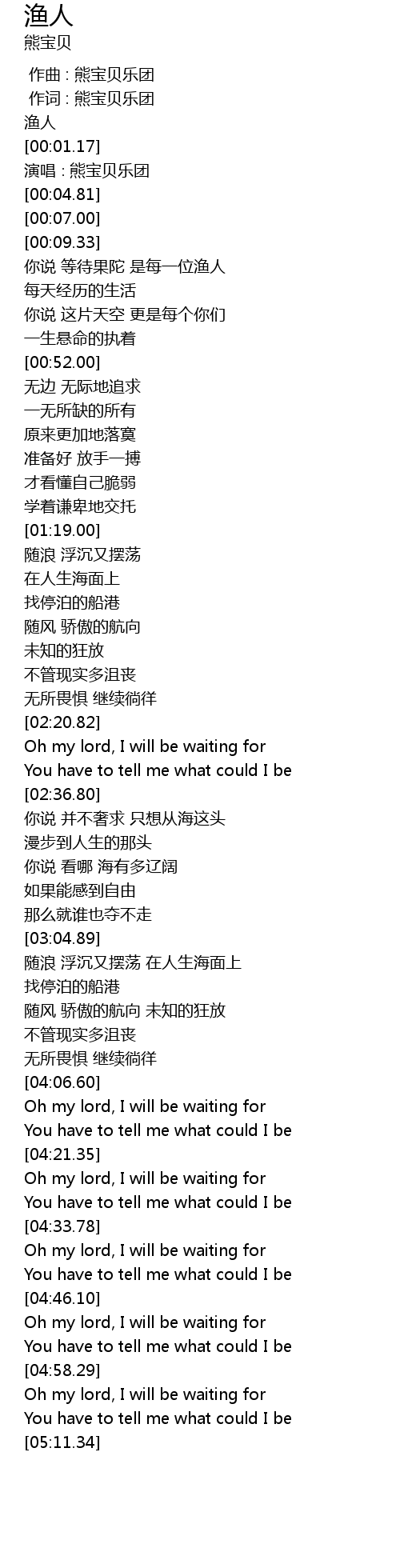 | [00:00.00] | 渔人 |