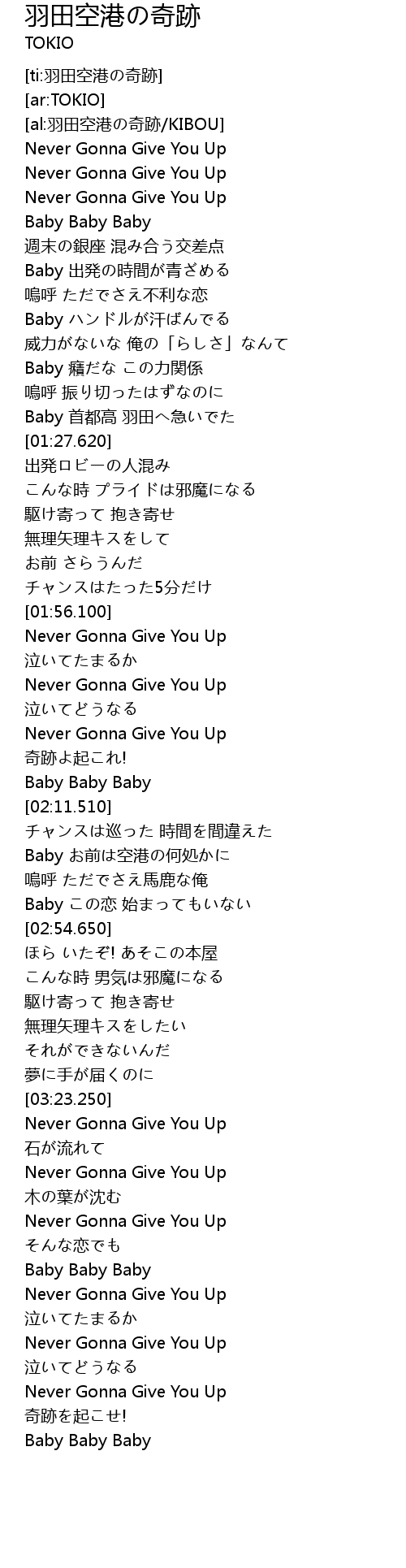 | [01:20.710] | Baby 首都高 羽田へ急いでた |