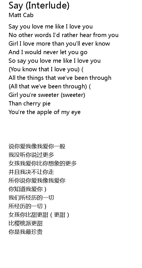 | [00:08.530] | Say you love me like I love you |