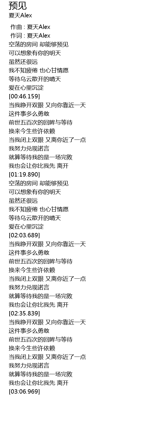 | [00:15.699] | 空荡的房间 却能够预见 |