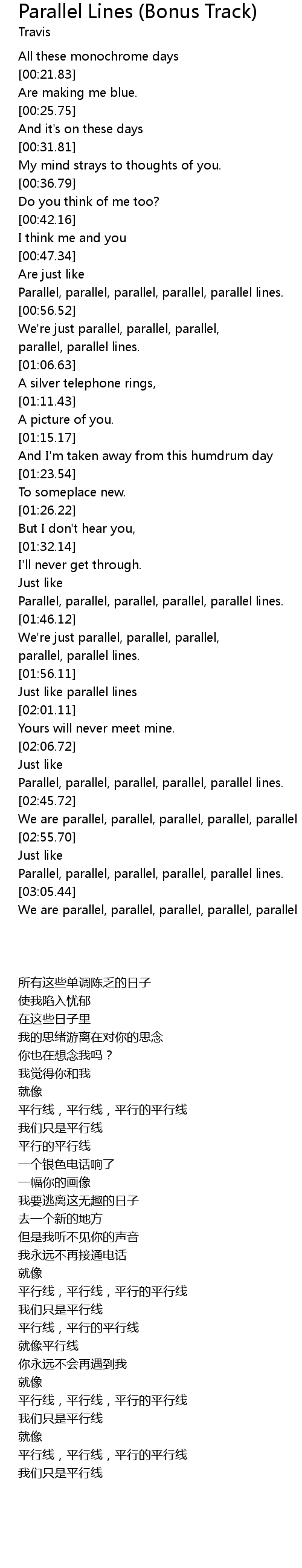 We are parallel, parallel, parallel, parallel, parallel lines. |