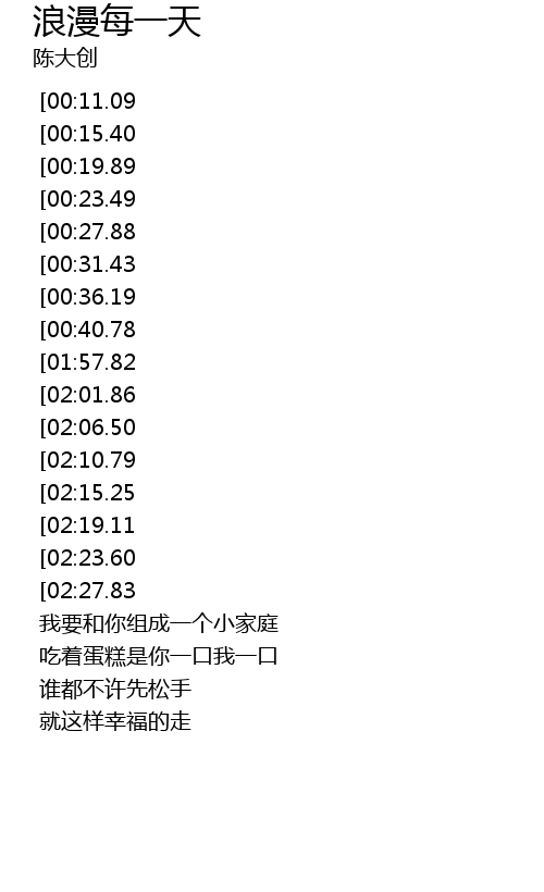 | [03:06.24] [02:15.25] [01:01.96] | 浪漫的每一天 |