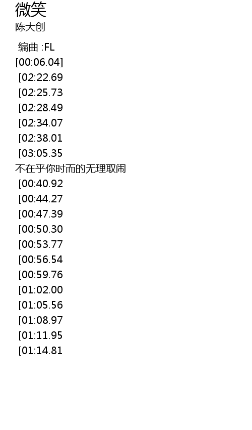| [02:47.11] [02:22.69] [01:18.34] [00:13.18] | ni de mei ge wei xiao |