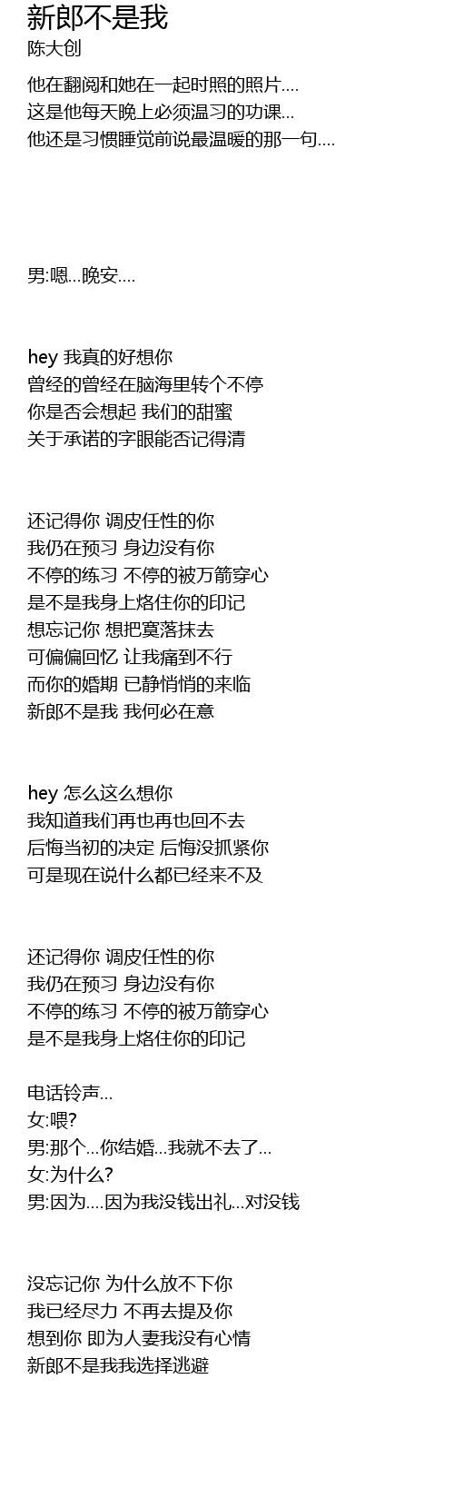 | nan: na ge... ni jie hun... wo jiu bu qu le... | |