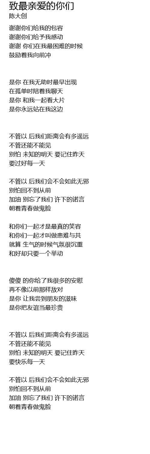 | 加油 别忘了我们 许下的诺言 | |