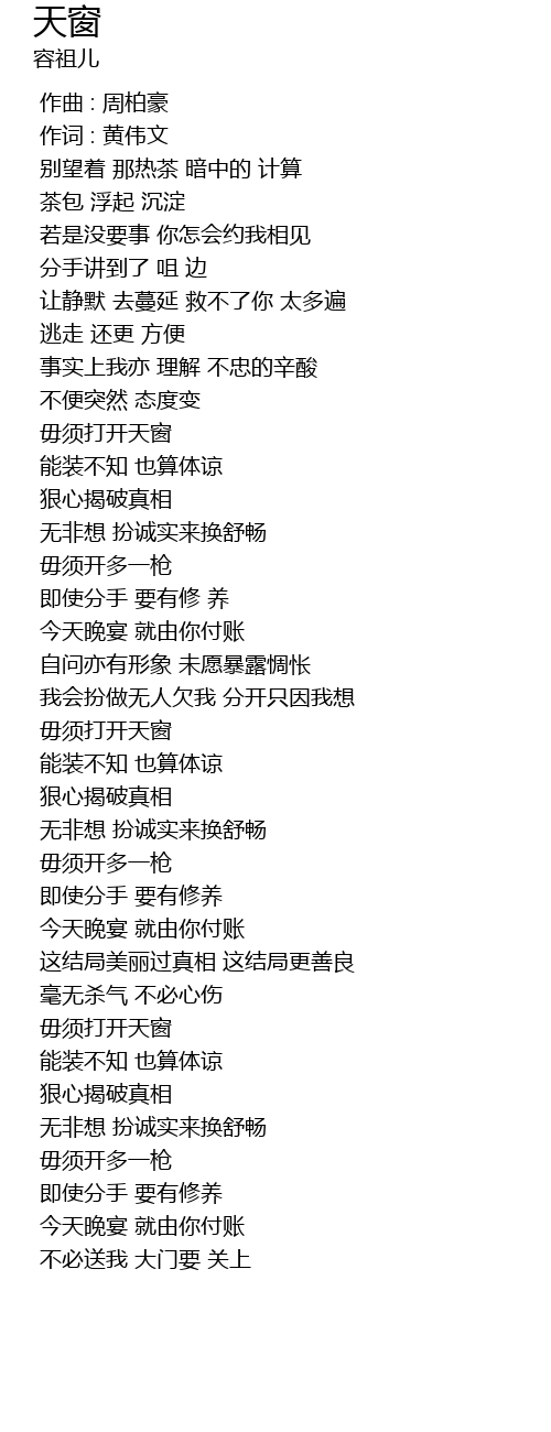 | Song | 天窗 |