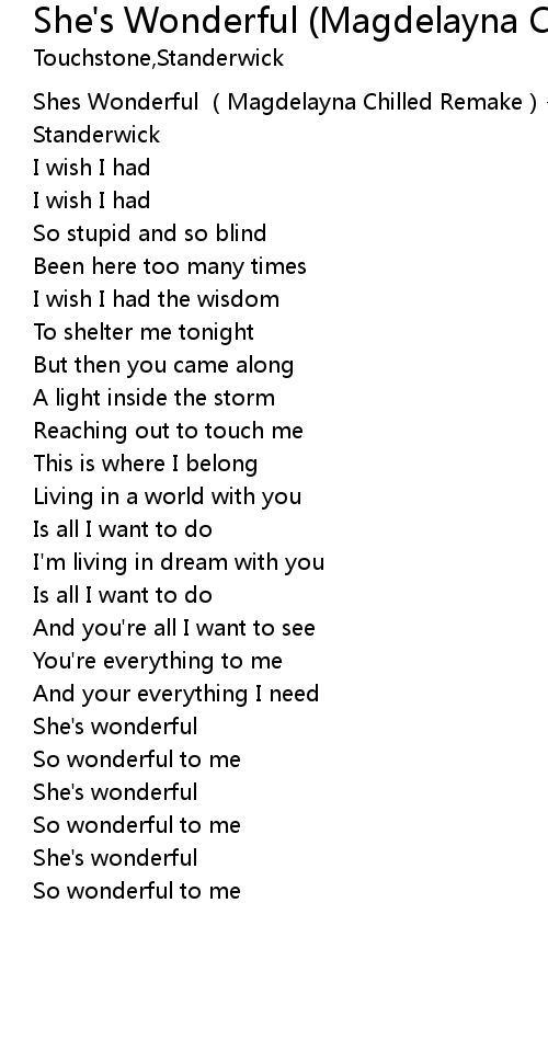 | [00:00.272] | Shes Wonderful (Magdelayna Chilled Remake)-Touchstone And Ian Standerwick |