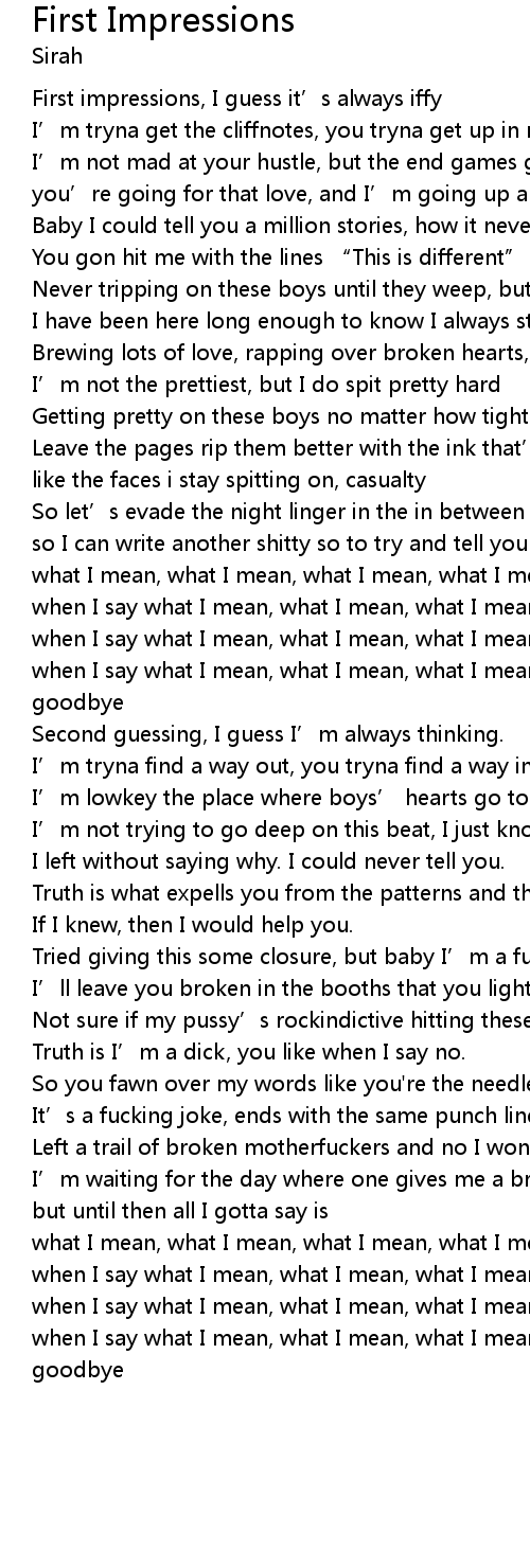| when I say what I mean, what I mean, what I mean, what I mean when I say | |