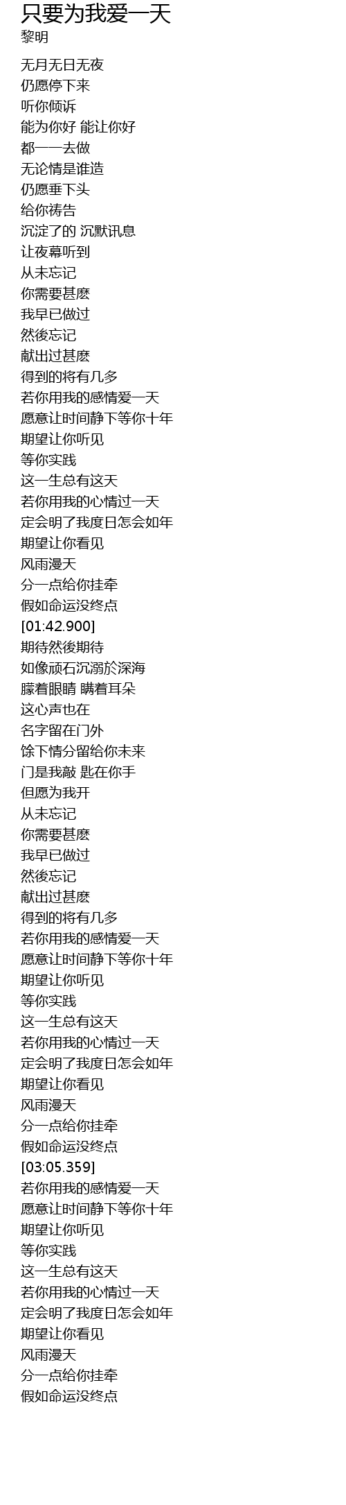 | [02:26.549] | ruo ni yong wo de gan qing ai yi tian |