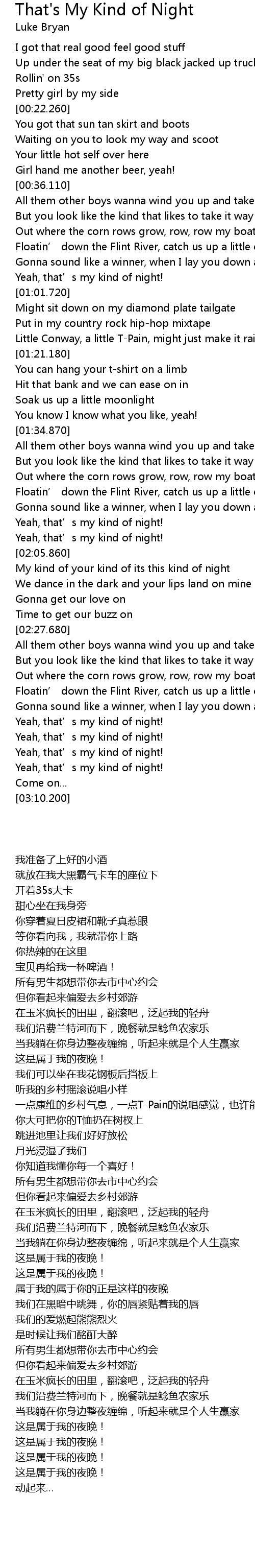 | [00:58.270] | Yeah, that' s my kind of night! |