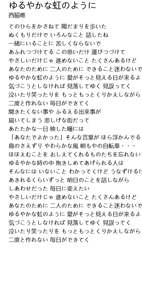 | ゆるやかな虹のように 愛がそっと見える日が来るよ | |
