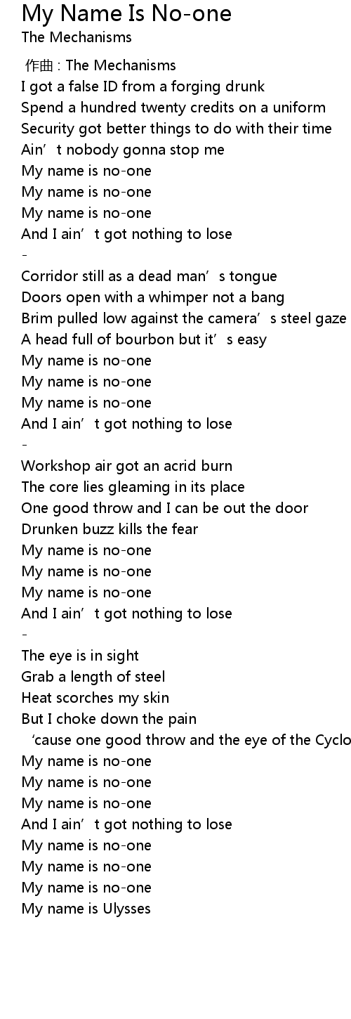 | [01:40.213] | My name is no-one |