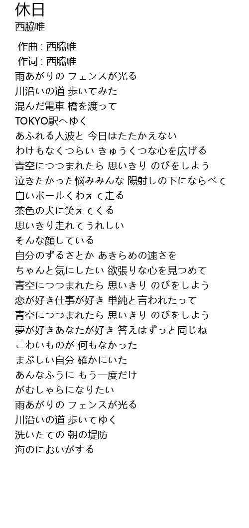 | [00:54.83] | 青空につつまれたら 思いきり のびをしよう |