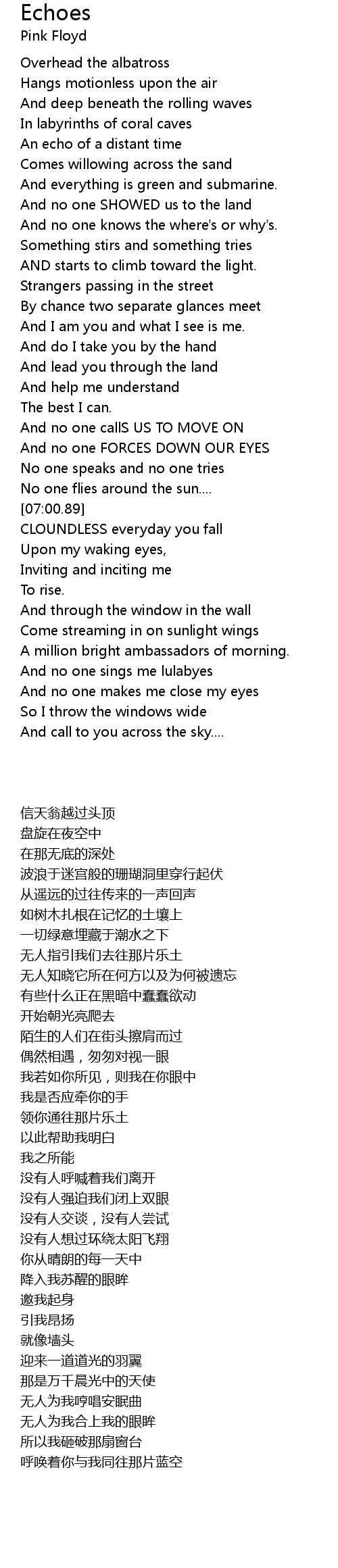 Echoes Lyrics