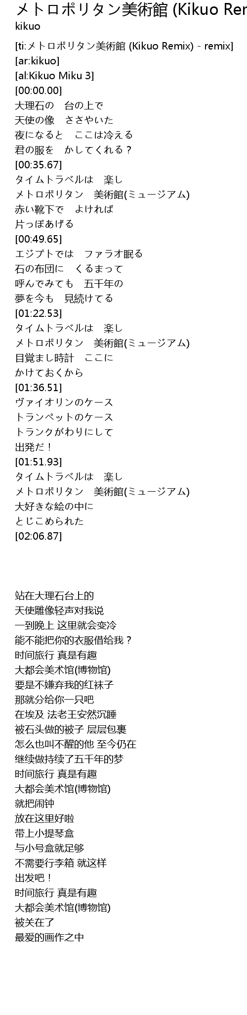 | [ti:メトロポリタン美術館 (Kikuo Remix) - remix] | |