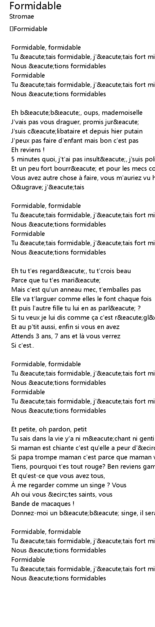 | Song | Formidable |
